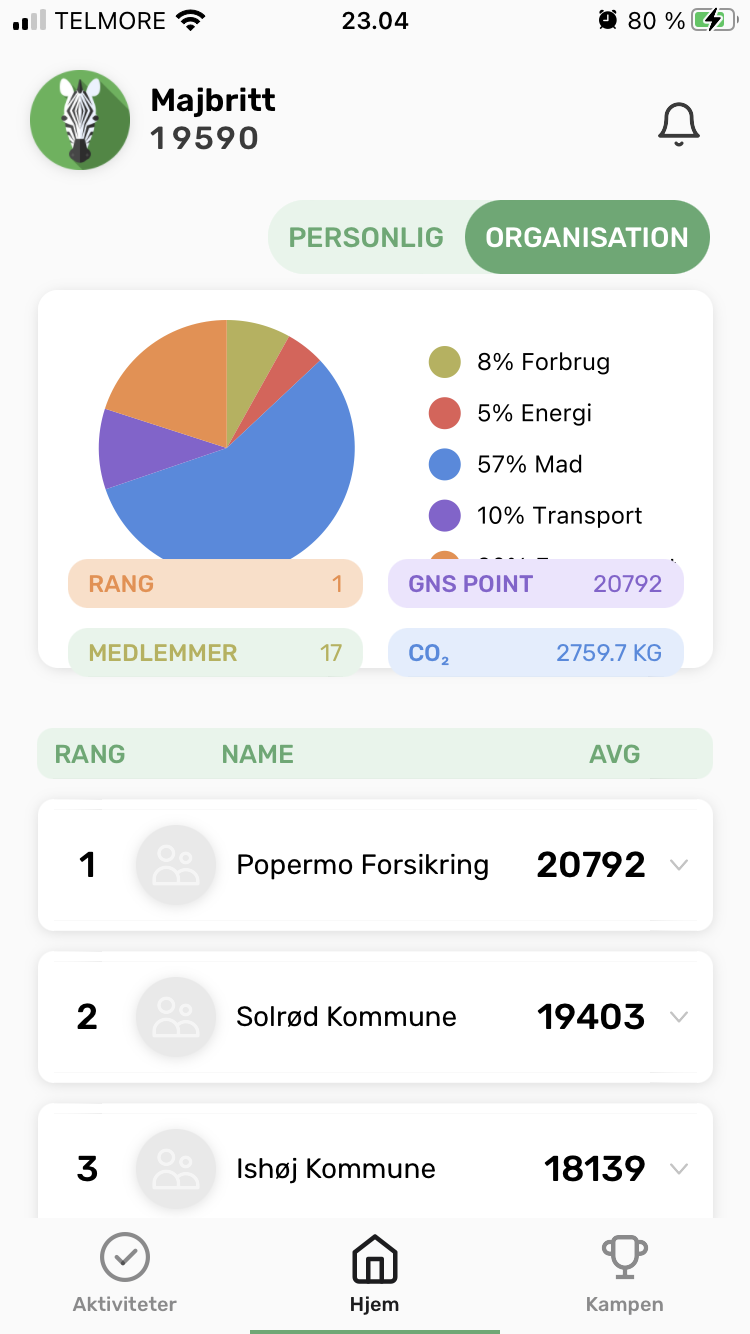 4 hold blev tilmeldt kampen, der foregår i en app, hvor man registrerer sin indsats på givne bæredygtige og klimavenlige aktiviteter og med point dyster mod de andre hold.