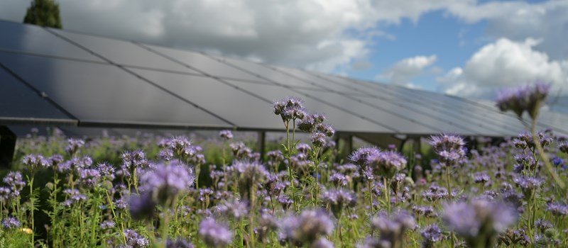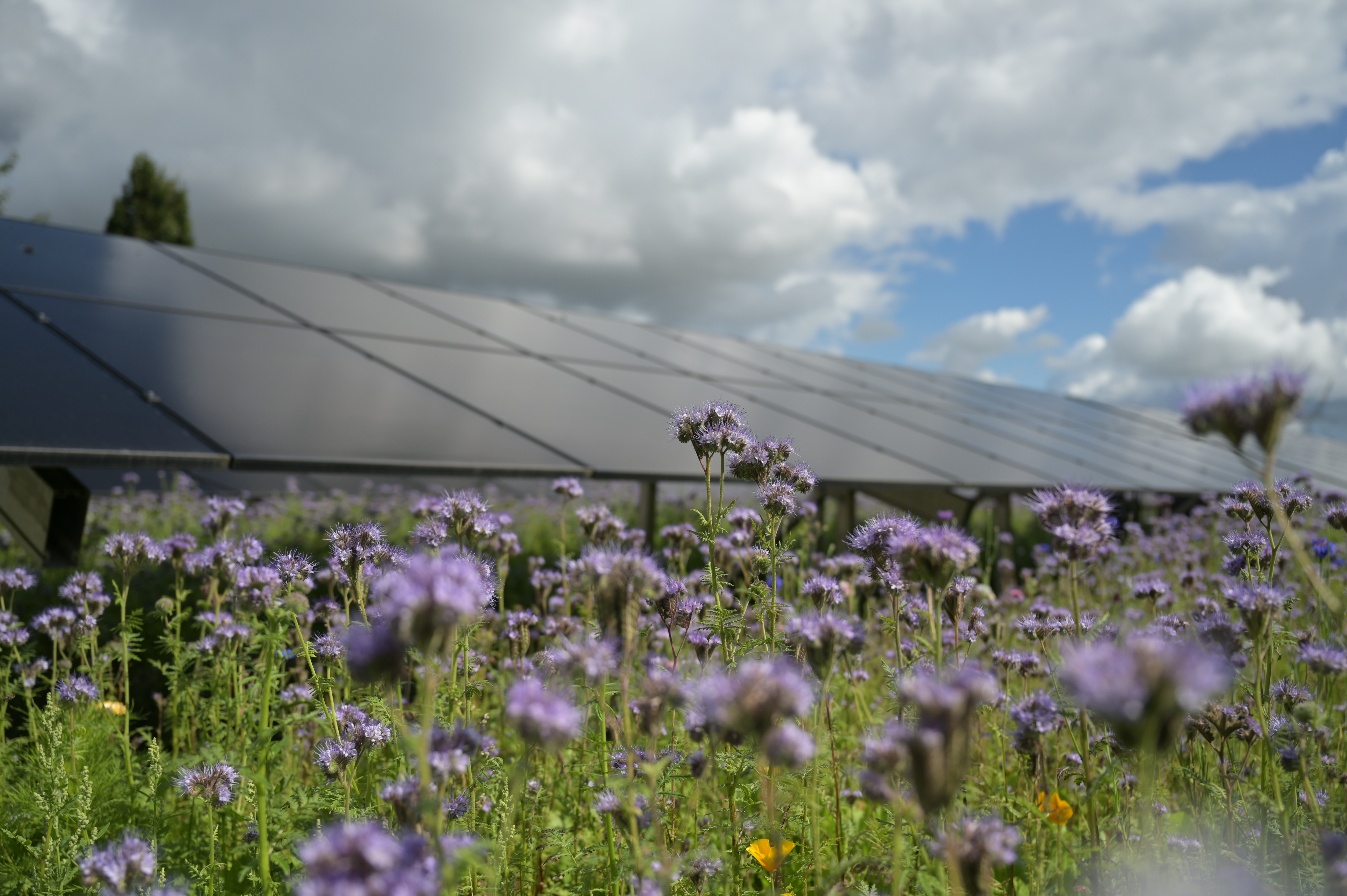 Popermo etablerede i 2023 rækker med vilde blomster mellem vores solcellepaneler for at sikre biologisk opretholdelse og bedre levevilkår for bier og insekter. Når blomsterne visner i efteråret, får de lov at stå, så diverse småfugle har mulighed for at spise frøene over vinteren.